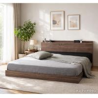 ローベッド ダブル ベッドフレーム ベッド USB コンセント 付き 連結 ダブルベッド フロアベッド ベット ベットフレーム ローベット 木製 73400142