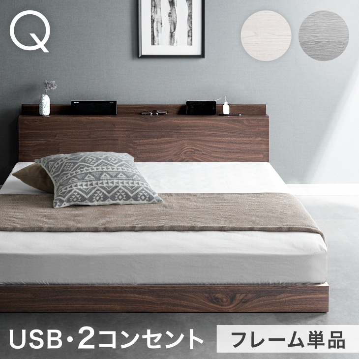 ベッド クイーン ローベッド ベッドフレーム すのこベッド おしゃれ 宮付き 宮棚 スマホスタンド付 木製 コンセント付 USB
