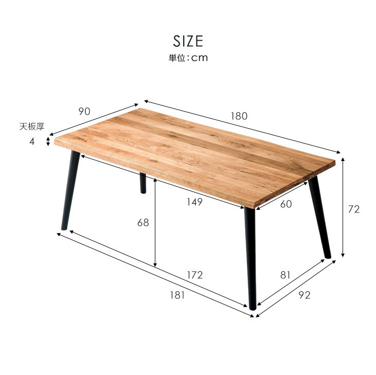 ダイニングテーブル 4人用 テーブル 180cm おしゃれ 長方形 4人掛け 木目 テーブル 木製 リビング 食卓 超大型