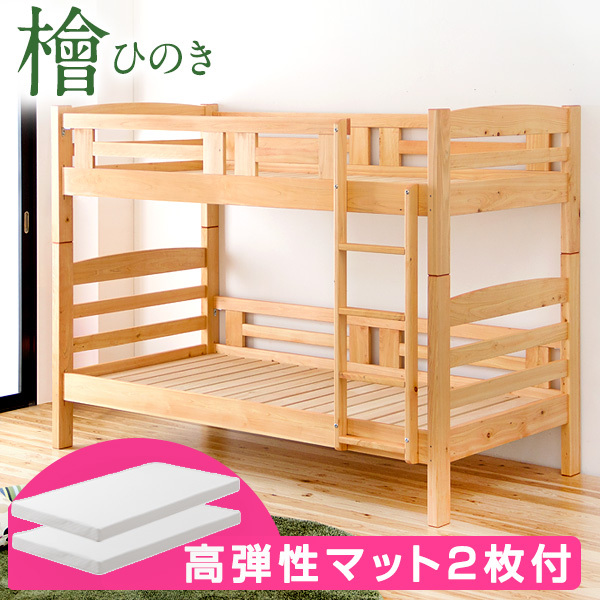 二段ベッド マットレス付き 2段ベッド 敷布団 セット 高さ160cm コンパクト 国産 熊本産ひのき 檜 木製 子供 大人用 分離 おしゃれ 超大型
