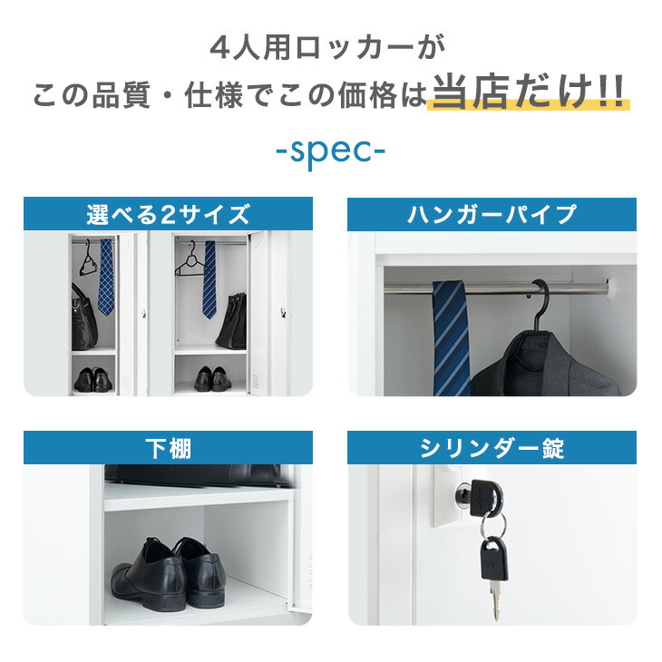 ロッカー 4人用 オフィス 更衣室 鍵付きロッカー 高耐久 収納 鍵 業務用 会社 法人 鍵付き収納 シンプル おしゃれ 2列 2段