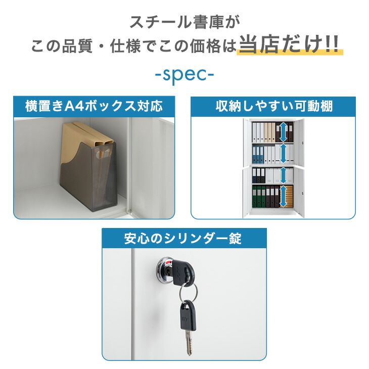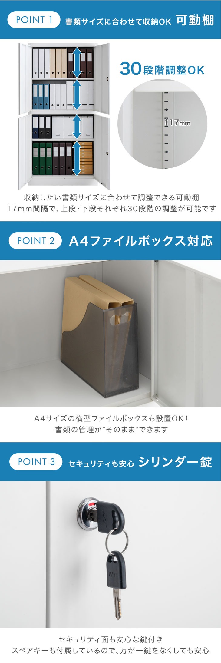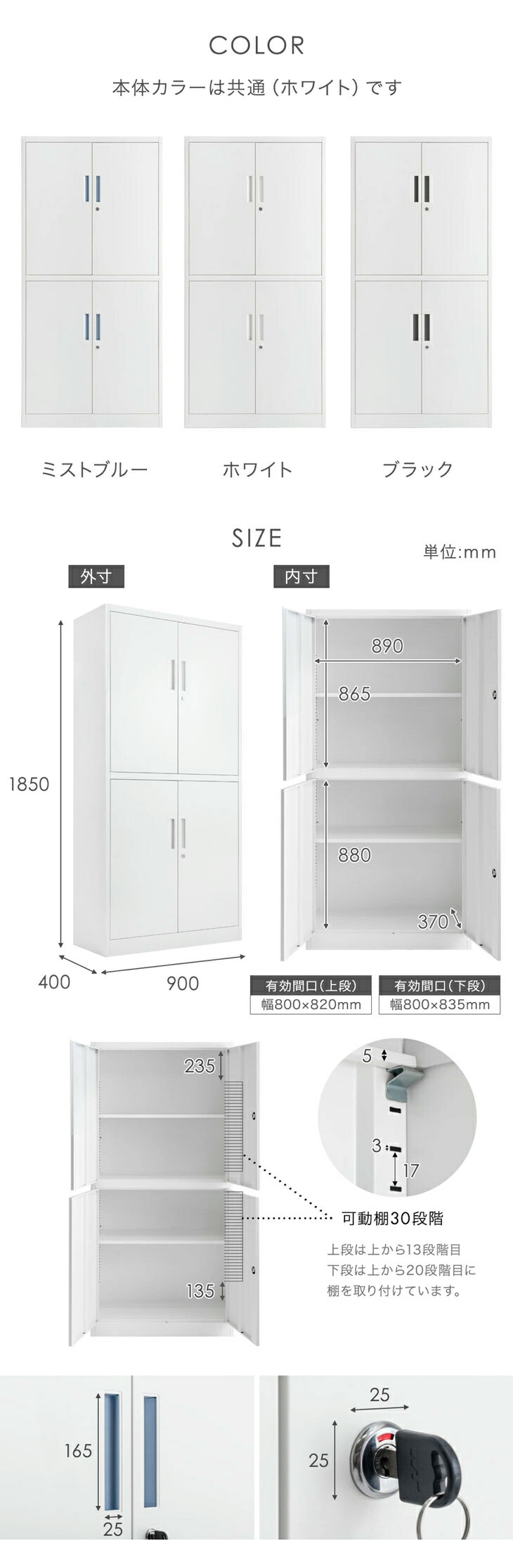 オフィス収納 鍵付き 収納 法人 業務用 スチールキャビネット おしゃれ シンプル スチール書庫 幅900 鍵 両開き 扉付き