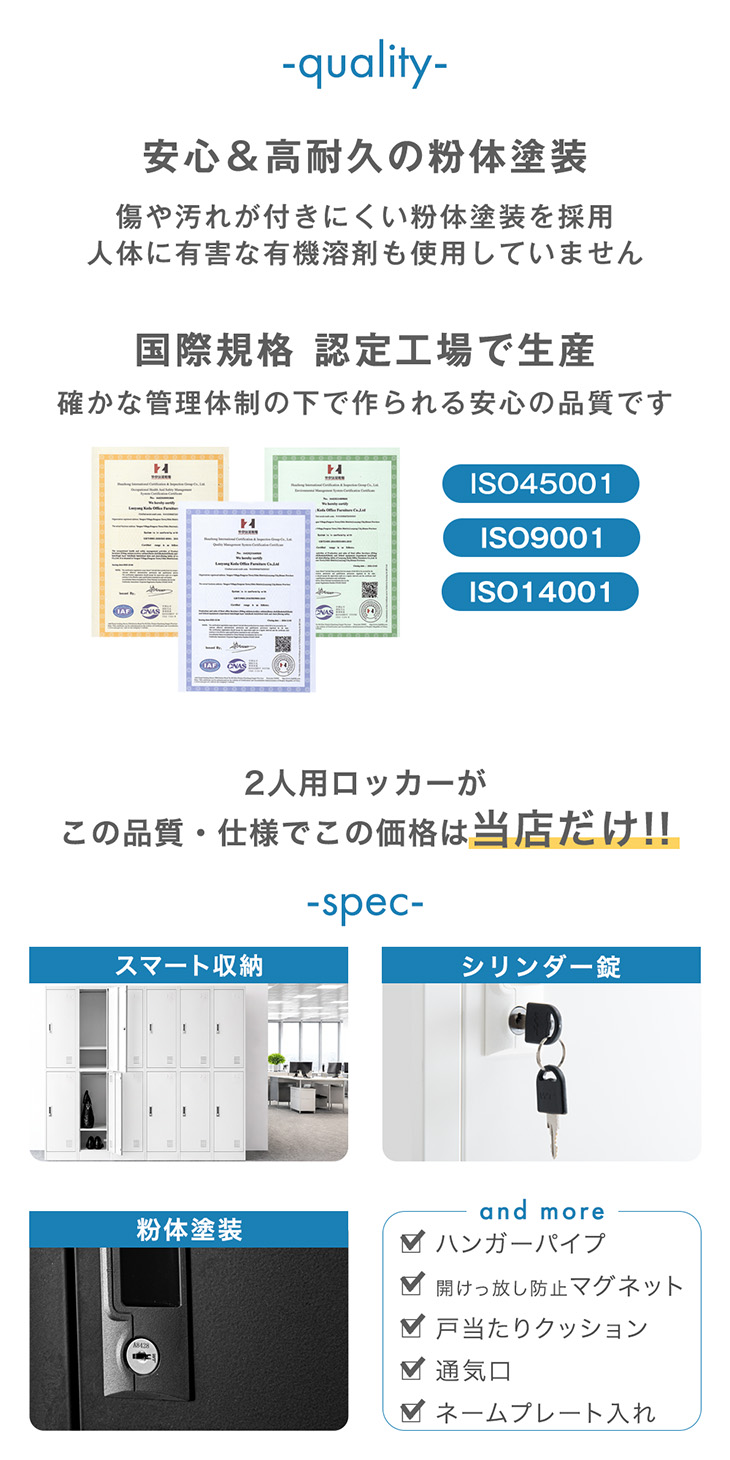 22日+5% ロッカー 2人用 スリム オフィス 更衣室 鍵付きロッカー 高耐久 収納 鍵 業務用 会社 法人 鍵付き シンプル おしゃれ 貴重品ロッカー