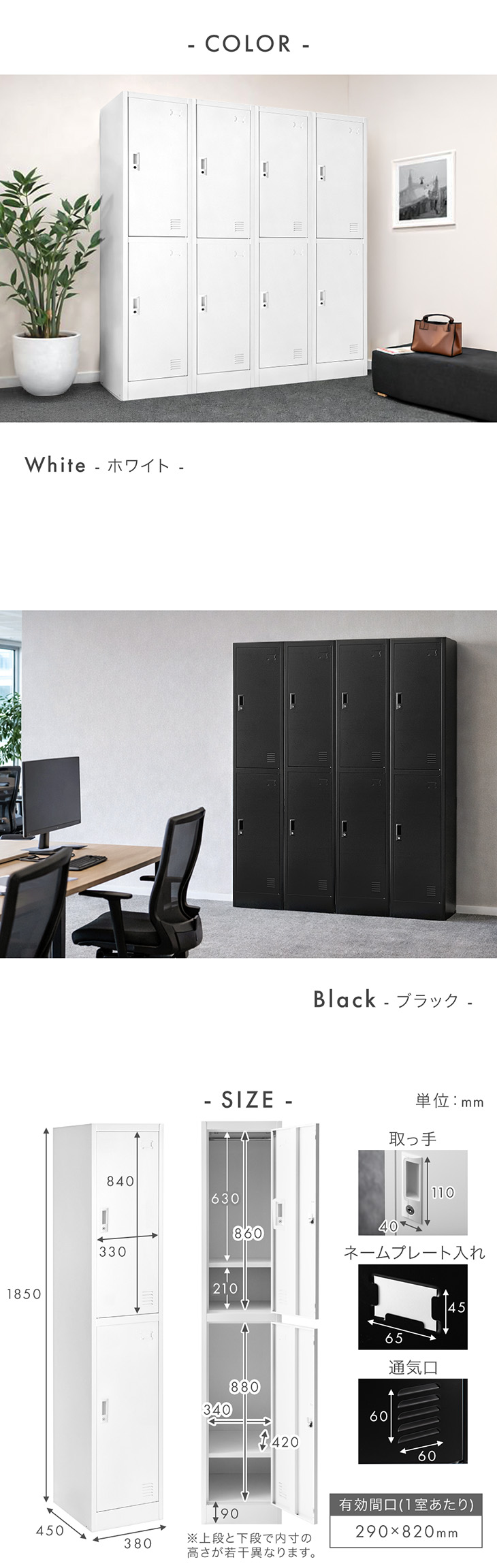 内寸(1室あたり):幅340x奥行420x高さ860mmm