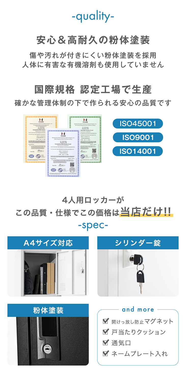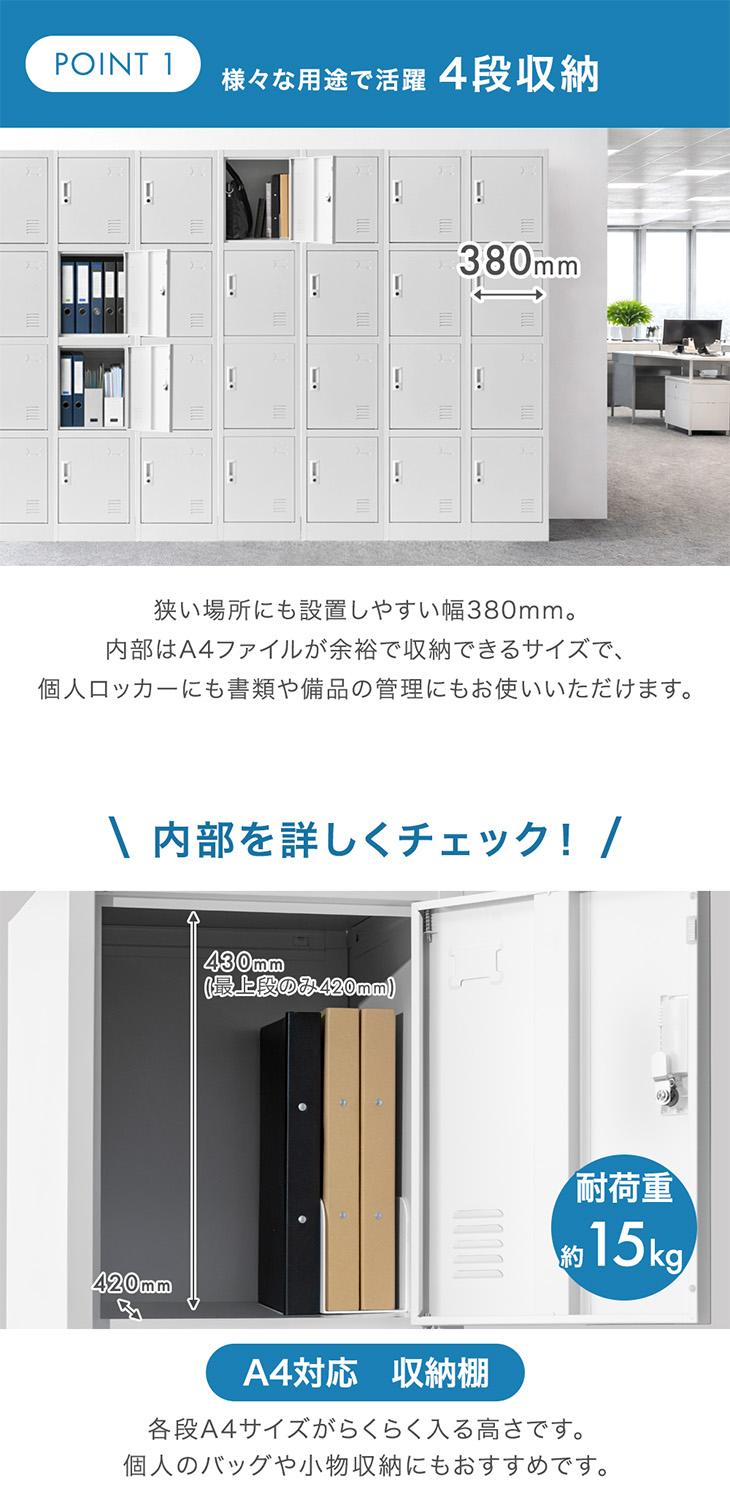 ロッカー 4人用 スリム オフィス 更衣室 鍵付きロッカー 高耐久 収納 鍵 業務用 会社 法人 鍵付き シンプル おしゃれ 貴重品ロッカー