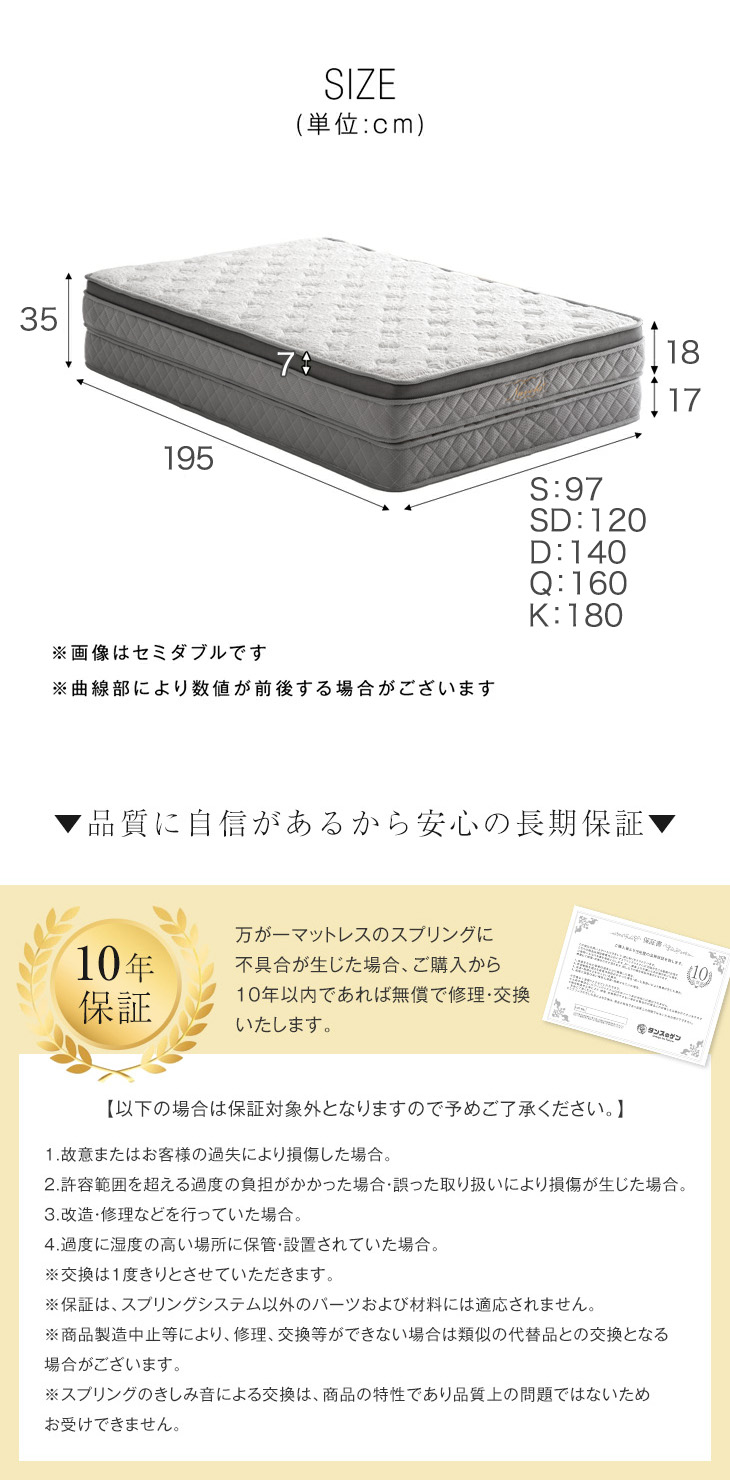 ポケットコイルスプリング、高反発ウレタン(30D)、ウレタンフォーム(20D)、綿フェルト、不織布