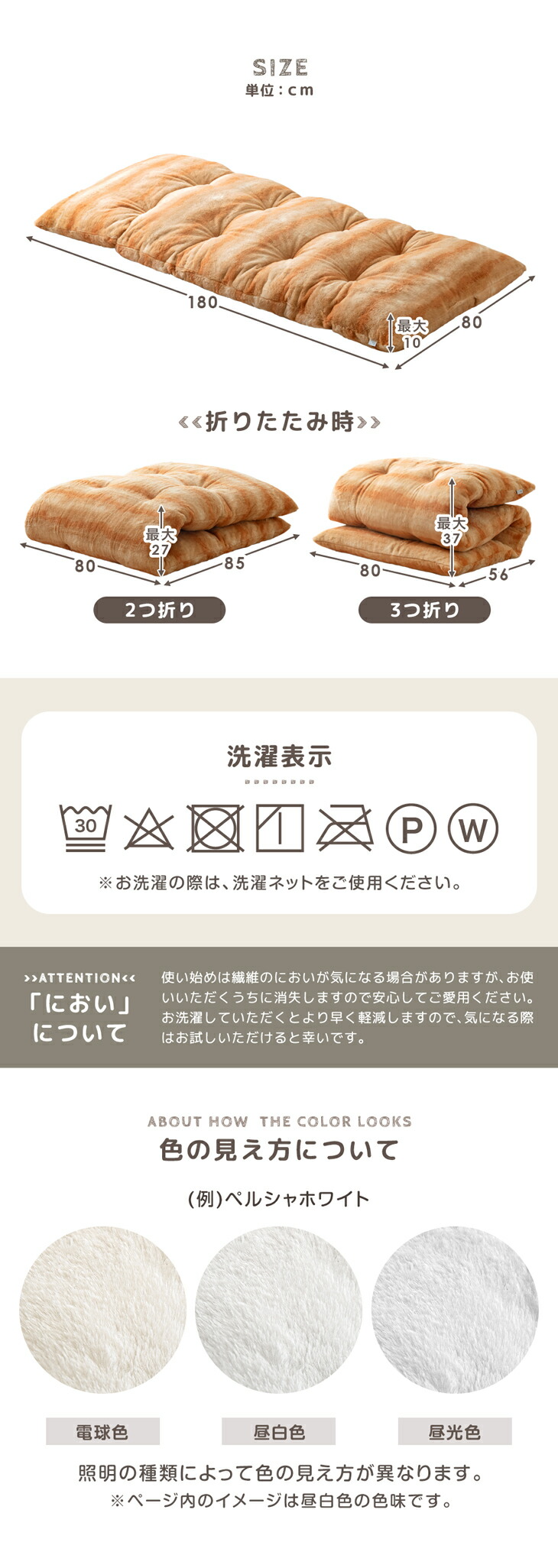 ※使い始めは繊維のにおいが気になる場合がありますが、お使いいただくうちに消失しますので安心してご愛用ください。お洗濯していただくとより早く軽減します。