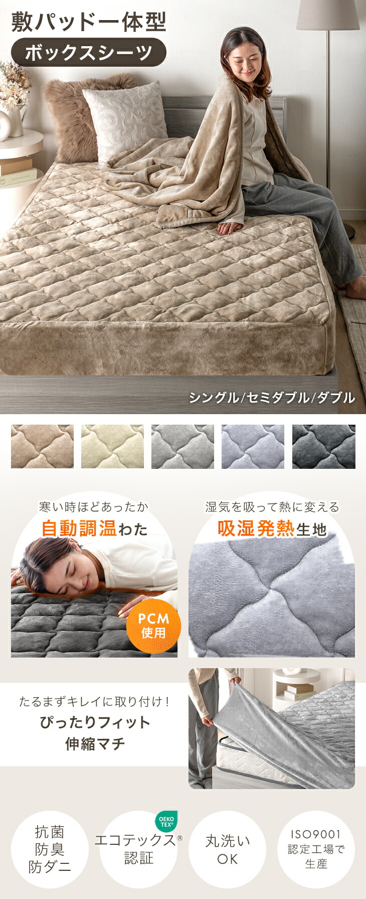 17日+5% ボックスシーツ 敷きパッド シーツ 一体型 ダブル 洗える 冬用 一体型ボックスシーツ 敷パッド 吸湿発熱 抗菌