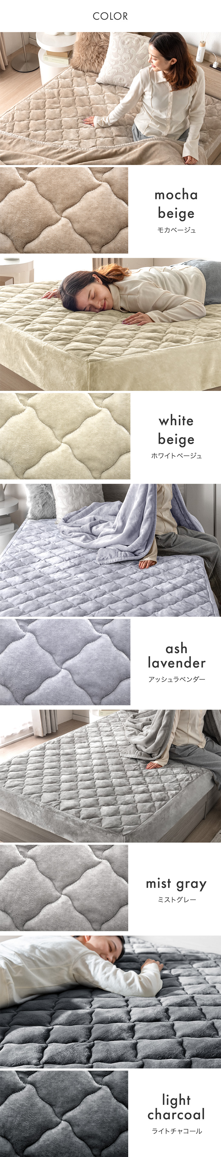 モカベージュ、ホワイトベージュ、アッシュラベンダー、ミストグレー、ライトチャコール
