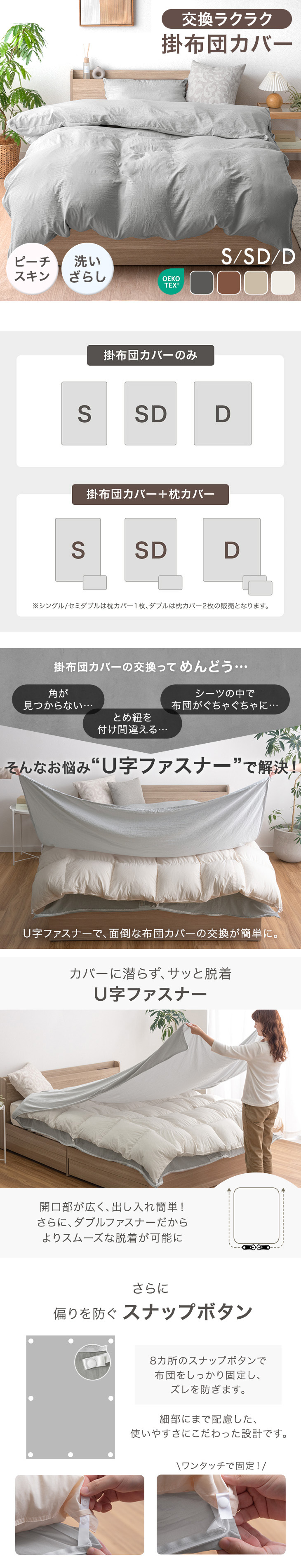 ・布団ズレ防止8か所スナップボタン