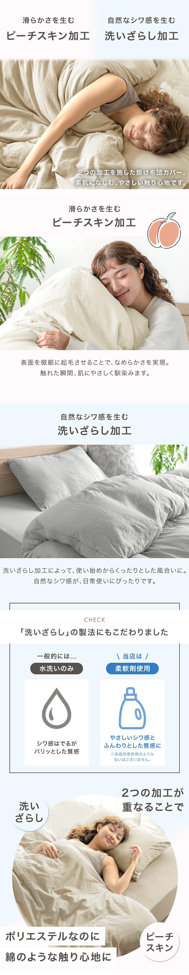 掛け布団カバー 洗える シングル おしゃれ 洗いざらし 布団カバー 掛布団カバー ピーチスキン 水洗い加工 掛けカバー