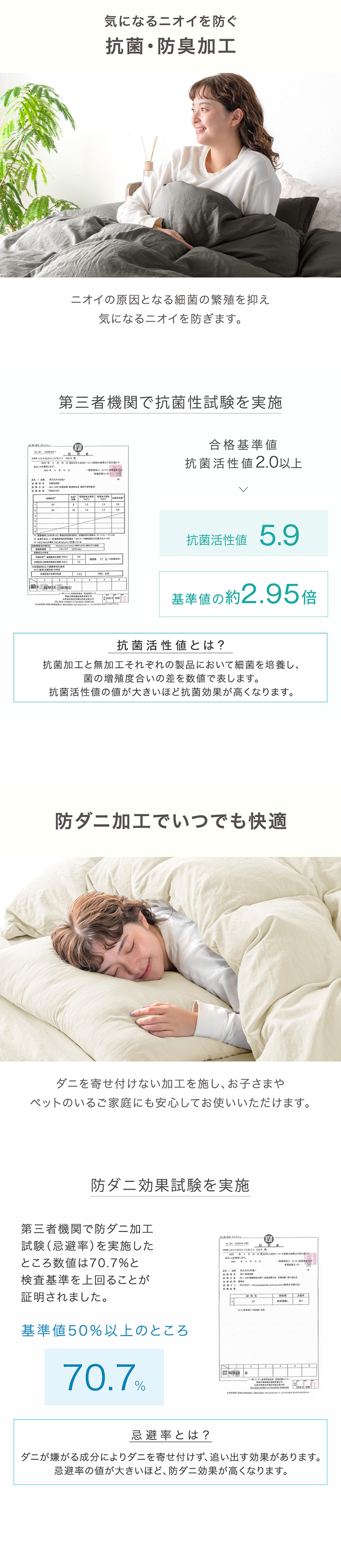 ・いつでも清潔!抗菌・防臭・防カビ・防ダニ加工