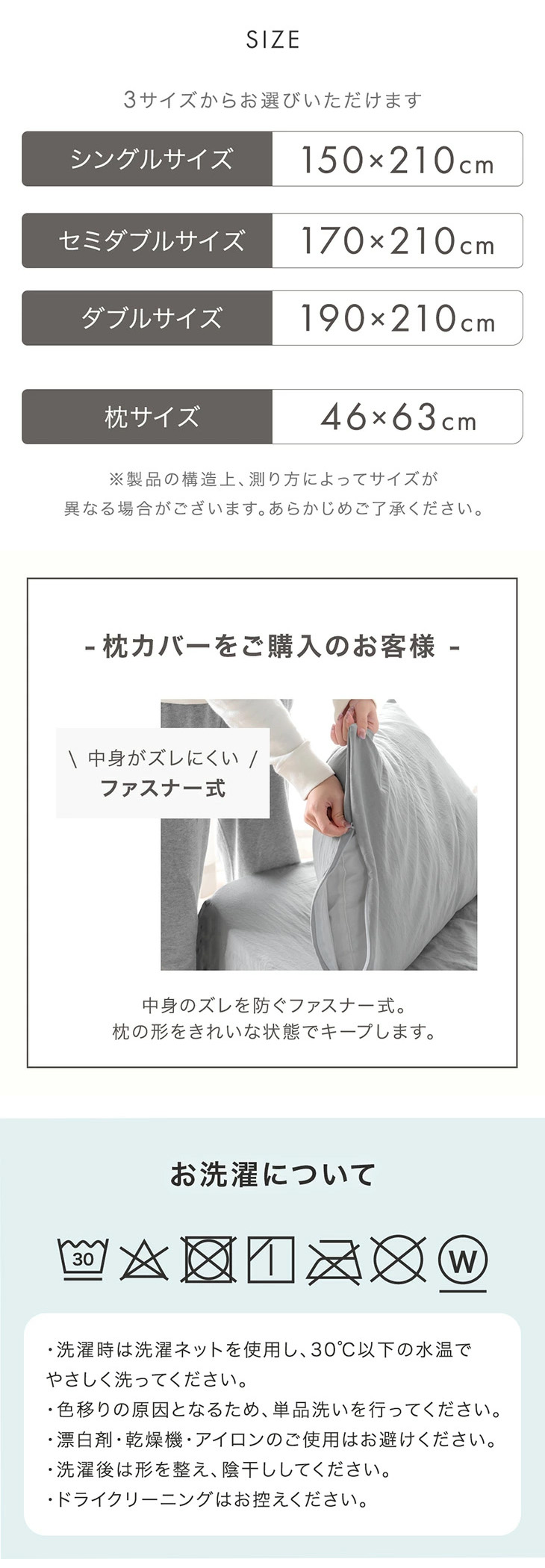 ※濃色のお洗濯は色移りの原因となるため、洗濯ネットを使用し、必ず単品洗いを行ってください。