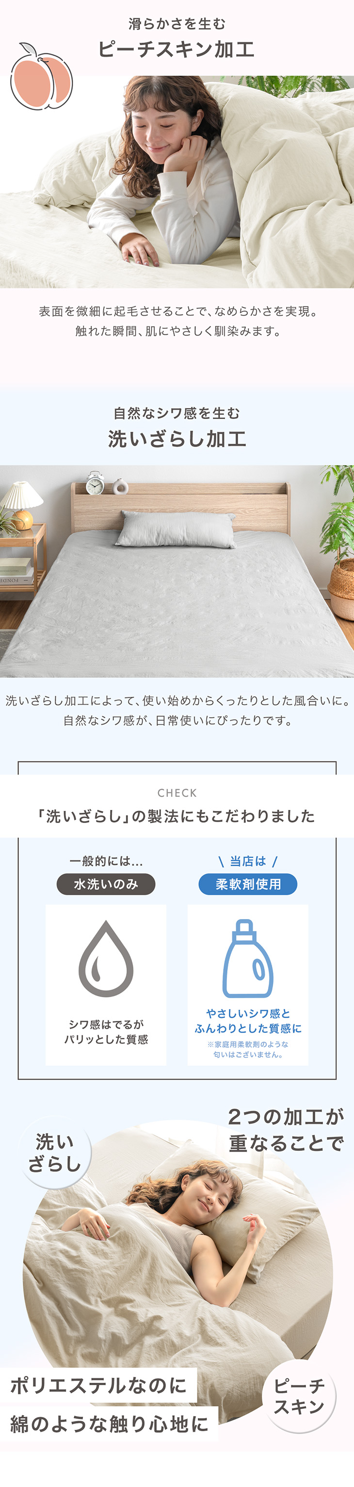 ・なめらかな肌触りのピーチスキン加工