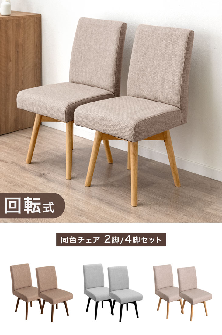 ダイニングチェア 回転 2脚セット おしゃれ 北欧 木製 2脚 くすみ チェア 椅子 シンプル リビングチェア 天然木 クッション