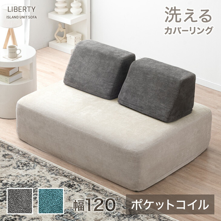 18日+5% ソファ ソファー 2人掛け 北欧 おしゃれ 洗える カバーリング 幅120 アイランドソファ 1人掛け ユニットソファ ポケットコイル 背もたれ