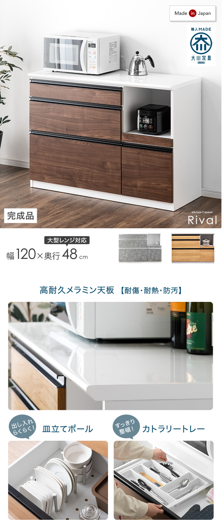 食器棚 おしゃれ 収納 カップボード 北欧 国産 完成品 幅120 レンジ台 レンジラック 食器 棚 キッチン収納 レンジボード 超大型