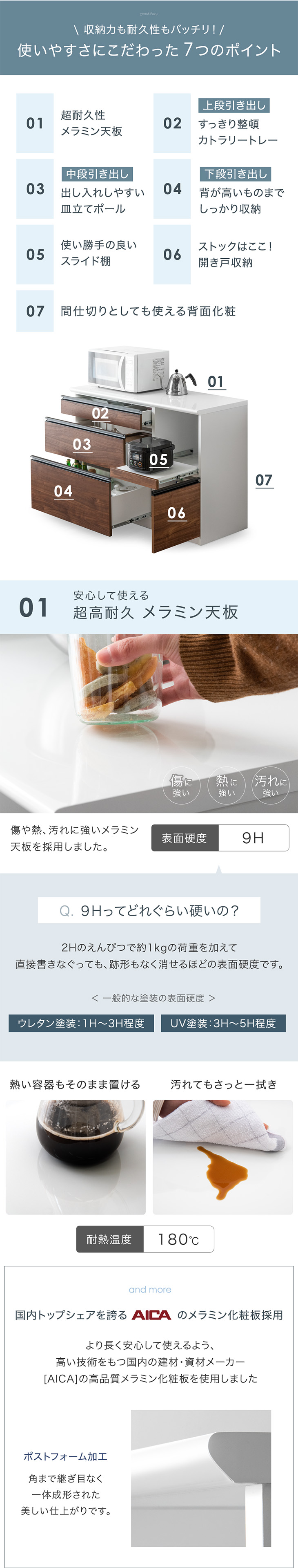 天板:AICAメラミン(ポストフォーム仕上げ)