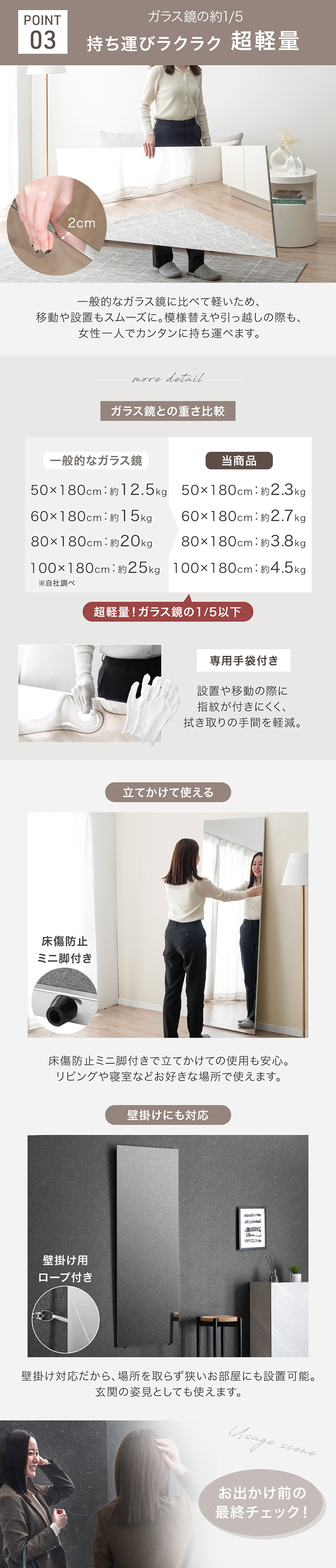 11日+5% 全身鏡 割れない 姿見 おしゃれ 超軽量 ダンス フレームレス 幅50 鏡 全身 割れない鏡 ミラー 壁掛け シンプル 子供 安全 賃貸 軽量 フィルムミラー