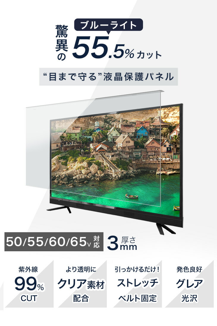 13日+5% 液晶テレビ保護パネル 55型 55インチ ブルーライトカット 3mm厚 液晶保護フィルム テレビカバー 保護 テレビ保護パネル 55 テレビガード 子供 赤ちゃ