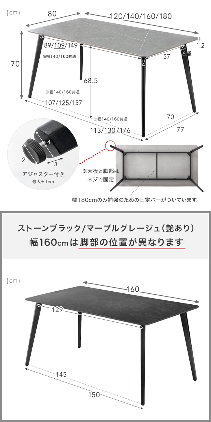 ※耐荷重100kgは、天板中央部に均等に荷重をかけた場合の目安です。