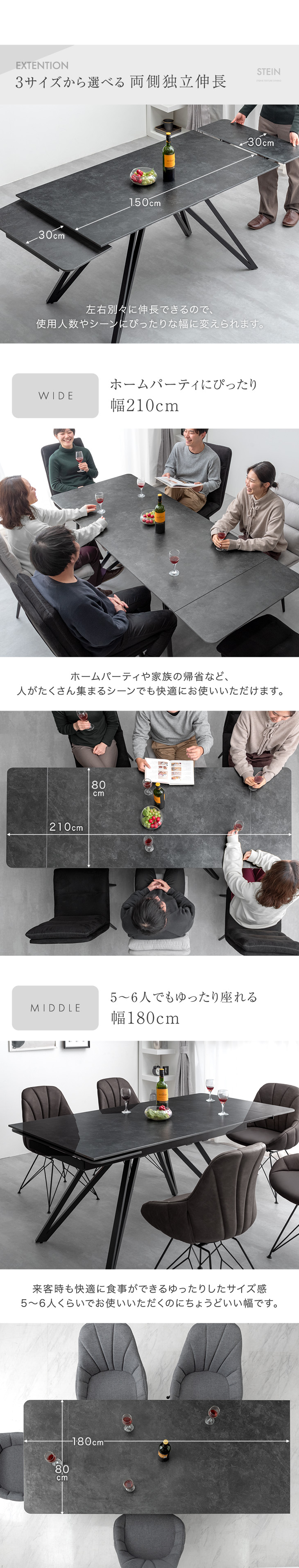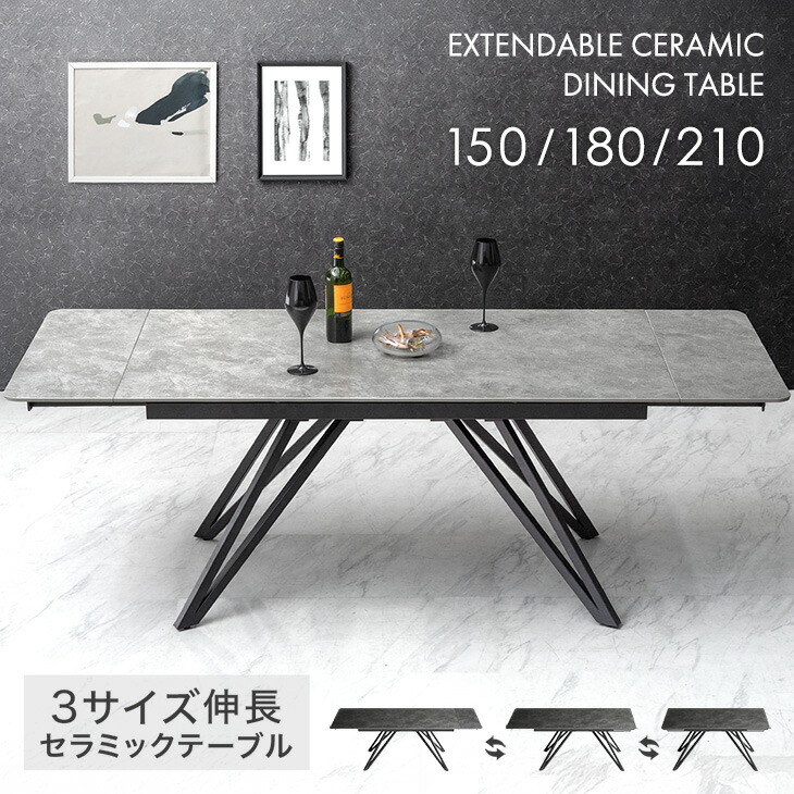 元日+5% ダイニングテーブル 4人 6人 伸縮 セラミック 伸長式 単品 150 180 長方形 折りたたみ ダイニング テーブル 耐熱 99993033 超大型