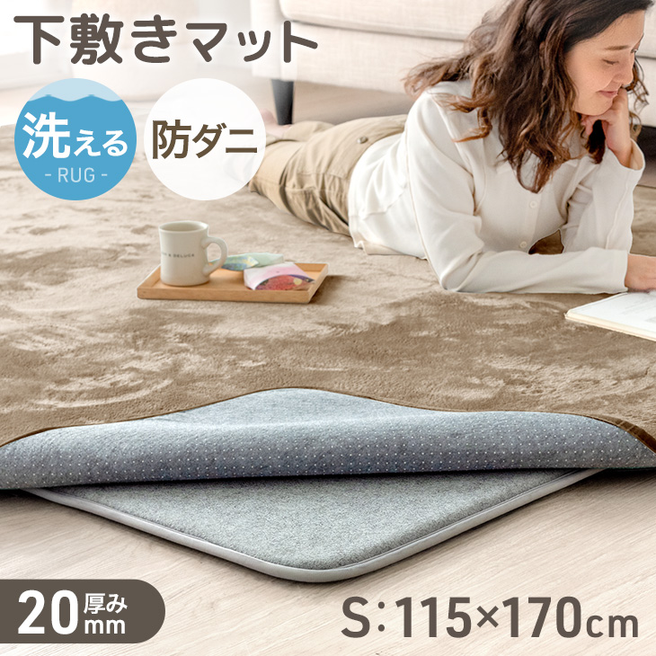 下敷きマット 洗える ラグ 下敷き 厚手 20mm 115×170 マット 1.5畳 下敷きラグ 床暖房 ラグマット アンダーラグ カーペット 防音 防ダニ 滑り止め