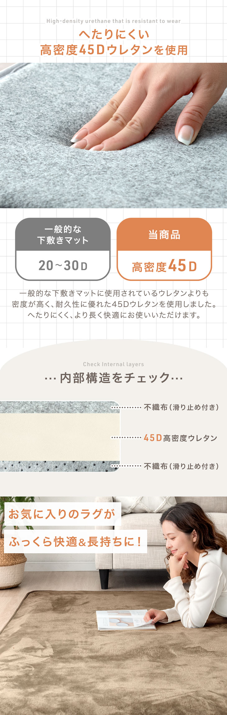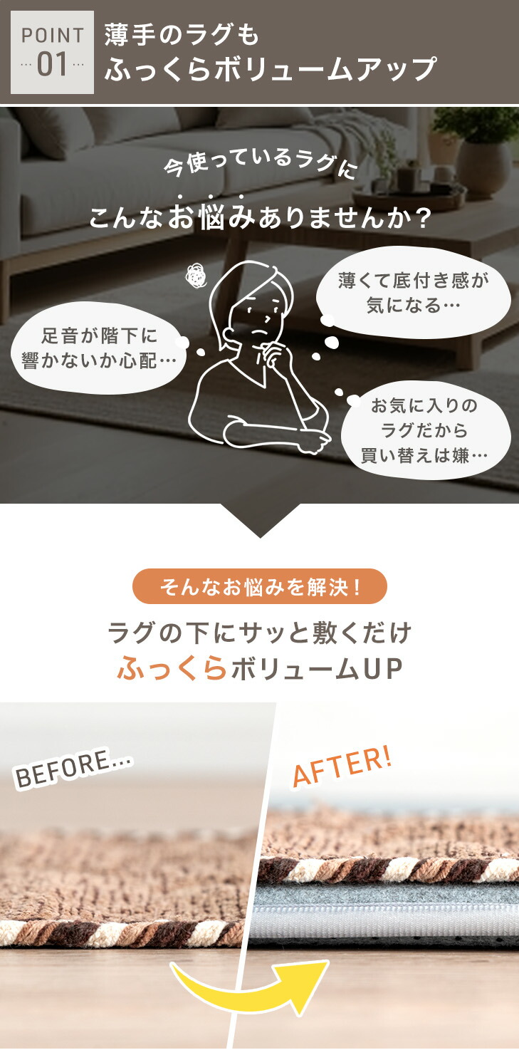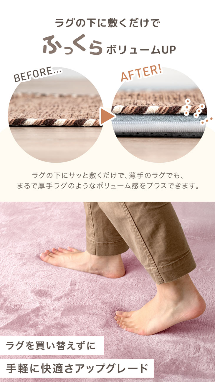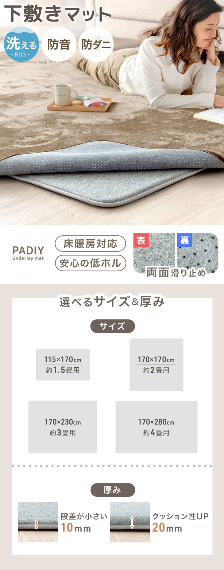 下敷きマット 洗える ラグ 下敷き 厚手 20mm 170×170 マット 2畳 下敷きラグ 床暖房 ラグマット アンダーラグ カーペット 防音 防ダニ 滑り止め