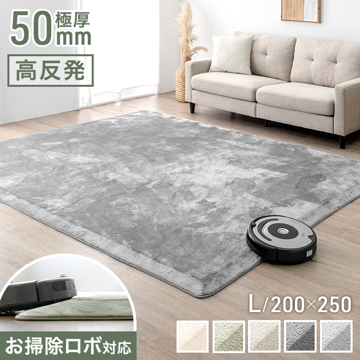 ラグ ラグマット カーペット 3畳 厚手 極厚 50mm厚 200×250 L 高反発 ウレタン 大判 おしゃれ 北欧 バリアフリー 床暖房 無地