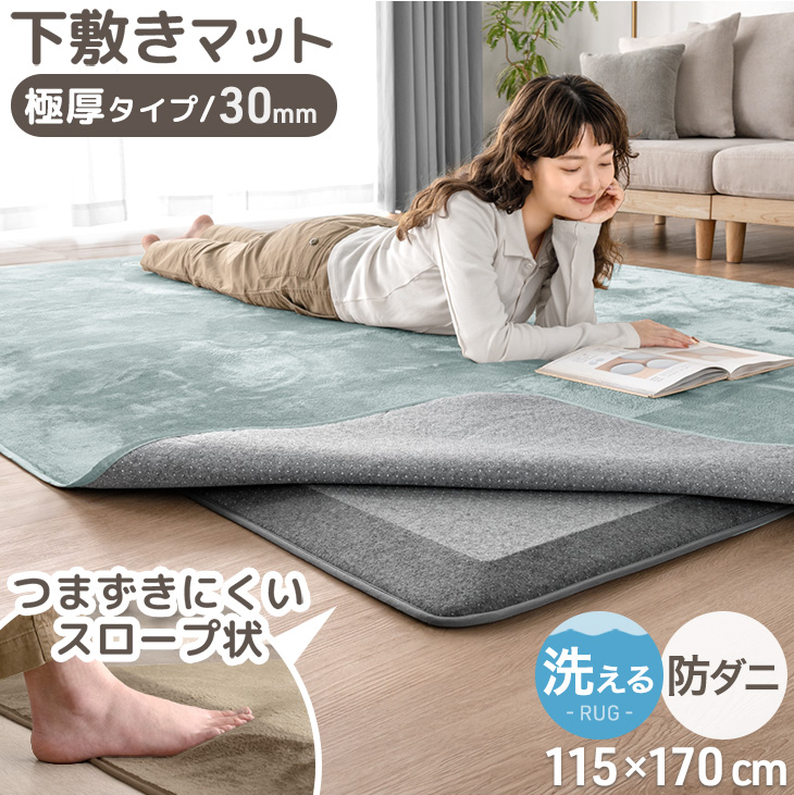 22日+5% 下敷きマット 洗える ラグ 下敷き 極厚 30mm 115×170 マット ラグ用 1.5畳 下敷きラグ 床暖房 ラグマット カーペット 防音 防ダニ 滑り止め 子供