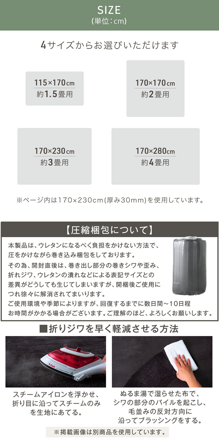 ※開梱直後はラグに折り目がついている場合がございます。 1週間程度で自然になくなります。