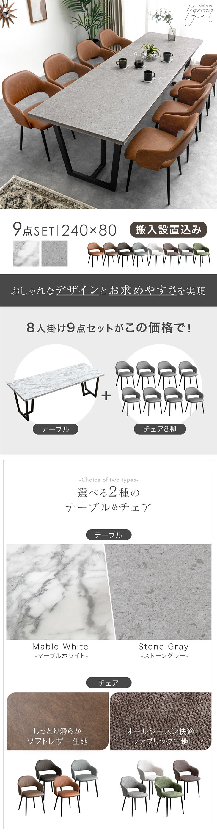 25日+5% ダイニングテーブルセット 8人 おしゃれ ダイニングセット 9点 240 長方形 ダイニングテーブル ダイニングチェア 8人用 チェア 北欧 テーブル搬入設置