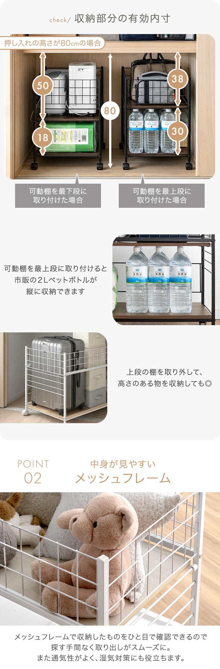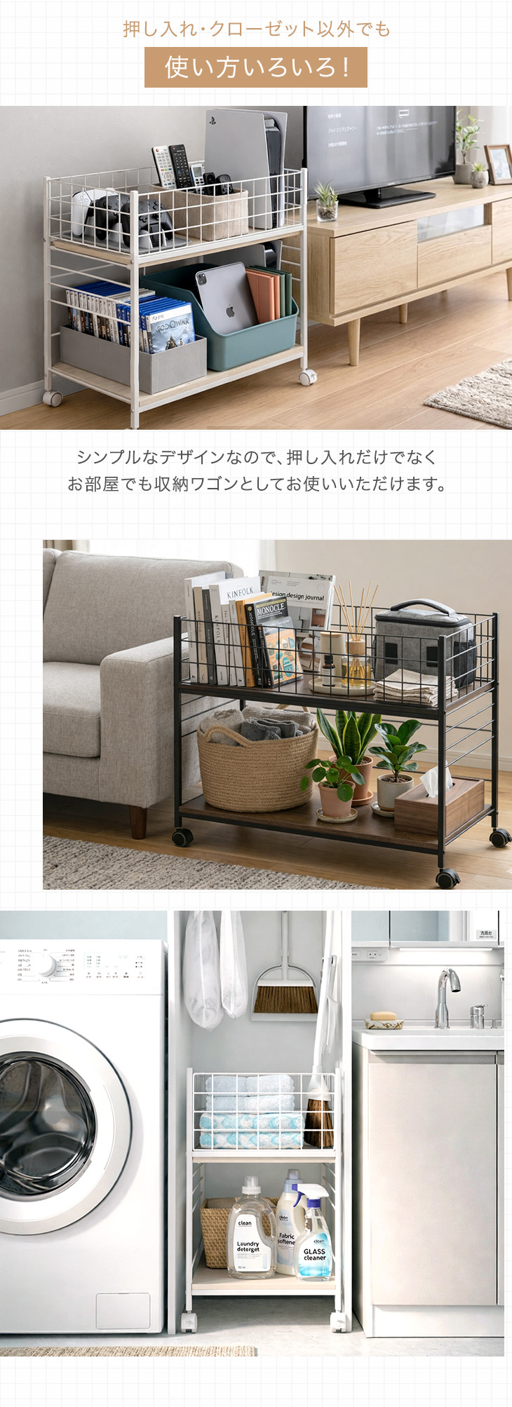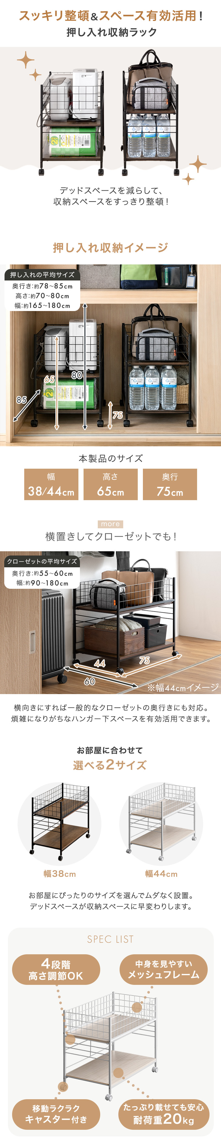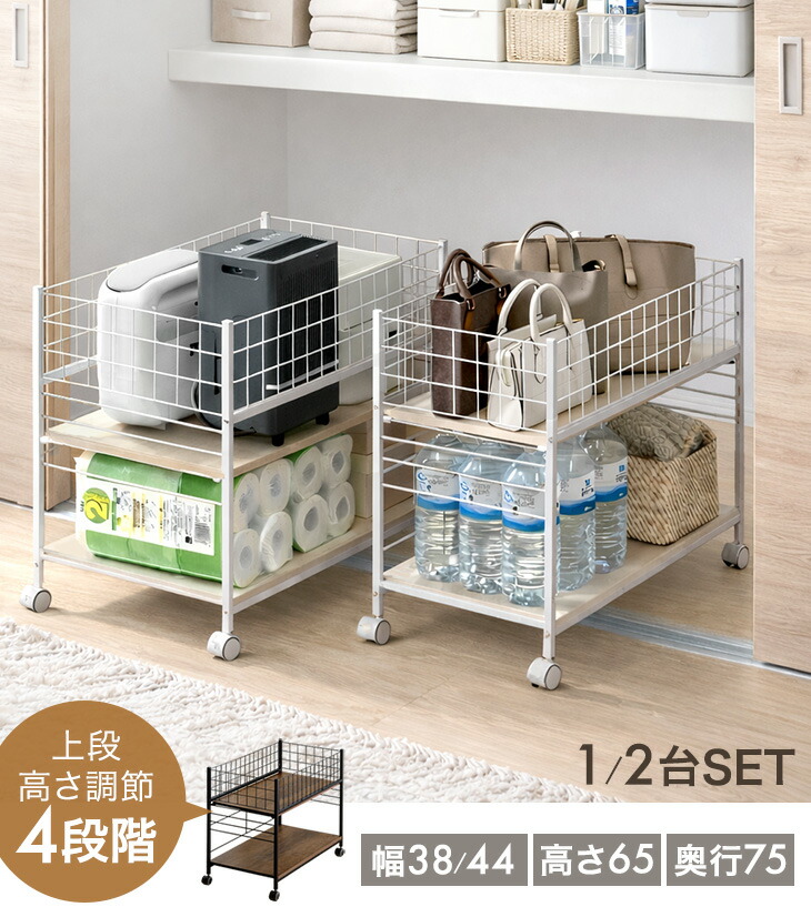 収納 押入れ おしゃれ 収納ラック 2台セット キャスター付き スチール 押し入れ収納 ワゴン 幅44 奥行75 クローゼット シンプル 大容量