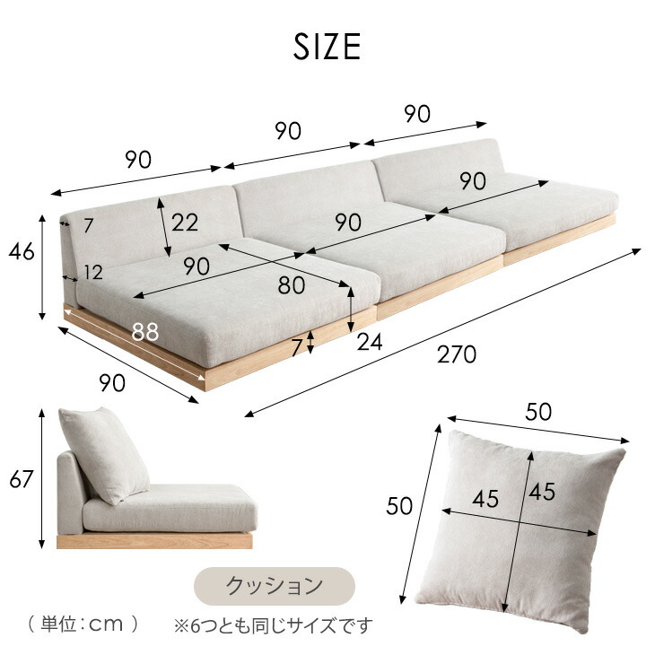 外寸幅270×奥行90×高さ67cm(座面高:24cm)