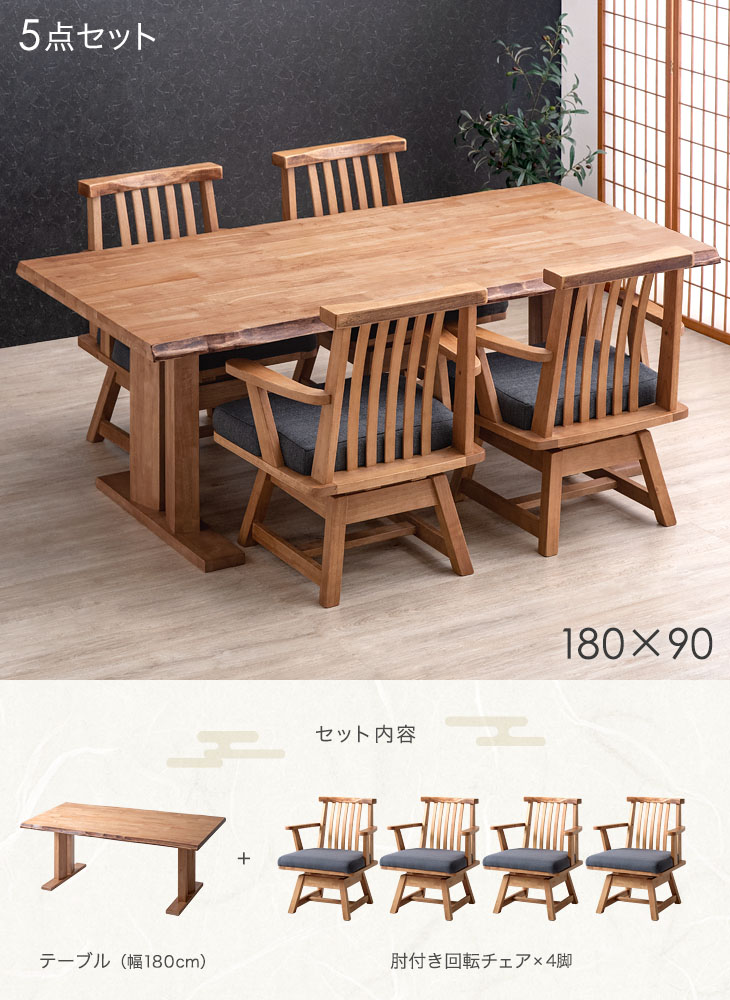 ダイニングテーブルセット 4人用 180 おしゃれ ダイニングテーブル ダイニングチェア 回転 椅子 ダイニングセット 和モダン