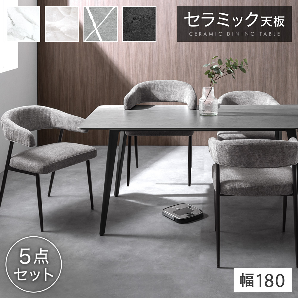 3日+5% ダイニングテーブル チェア 5点 セット 4人 180 セラミック ダイニングセット 4人掛け 長方形 ダイニング テーブル アイアン脚 99994402 超大型 北欧