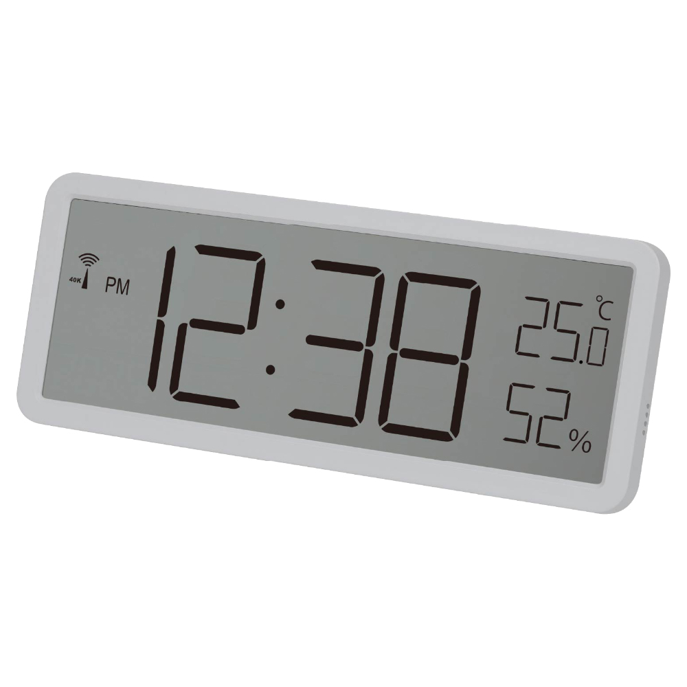●主張しすぎないスタイリッシュなデジタル電波時計 ●シンプルで分かりやすく見やすい表示のデジタル電波時計。●オシャレな細めの数字フォント。●温度・湿度・電波受信マーク付き。●場所にあわせて置いたり掛けたりできる両用タイプ。 +-----+-----+-----+-----+-----+ 電波時計(JJY) 電波受信状況表示 時刻表示 温度/湿度表示 12/24時間表示切替 電池交換お知らせ表示 置掛兼用 製品サイズ(H×W×D):81×202×20mm、200g 電源:単4形アルカリ乾電池x2 材質:枠/ABS樹脂、風防/無 中国製+-----+-----+-----+-----+-----+