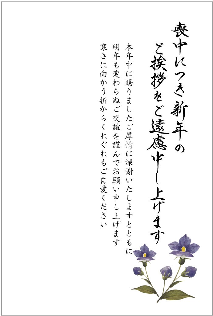 官製 10枚 喪中はがき(ききょう)縦書きタイプ(No.864) 85円切手付官製はがき/裏面印刷済み