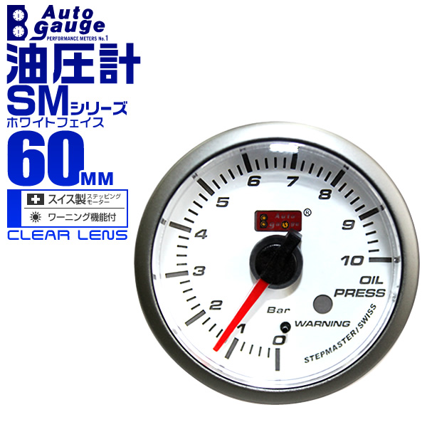 高級オートゲージ★60Φ SM 油圧計★ワーニング機能付★*仕様*・メーター径60mm・ブルーLED【付属品】英語説明書、配線など