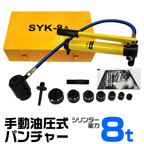 | ステンレス板や鉄板の穴あけに! 油圧の力で素早く楽にかつきれいに穴をあけることができます♪ 移動や保管に大変うれしいケース付きです! 【仕様】 ・油圧能力:8t ・シリンダストローク:25mm ・使用可能金属:ステンレス板・鉄板・アルミ板 など ・対応金属:ステンレス1.6mmまで 軟鋼鉄板3.2mmまで ・本体サイズ(約):340mm×55mm×130mm(閉じた状態)/335mm(開いた状態) ・ホース長さ(約):84cm ・ケースサイズ(約):410mm×230mm×120mm ・本体重量(約):6kg 【内容】 ・本体 ・ダイス(φ51、φ39、φ32、φ26、φ20、φ16) ・シャフト2本 ・英語版取扱説明書 (油圧工具 パンチャー 油圧 パンチャ パンチ ステンレス板 鉄板 穴あけ 工具 おすすめ) |