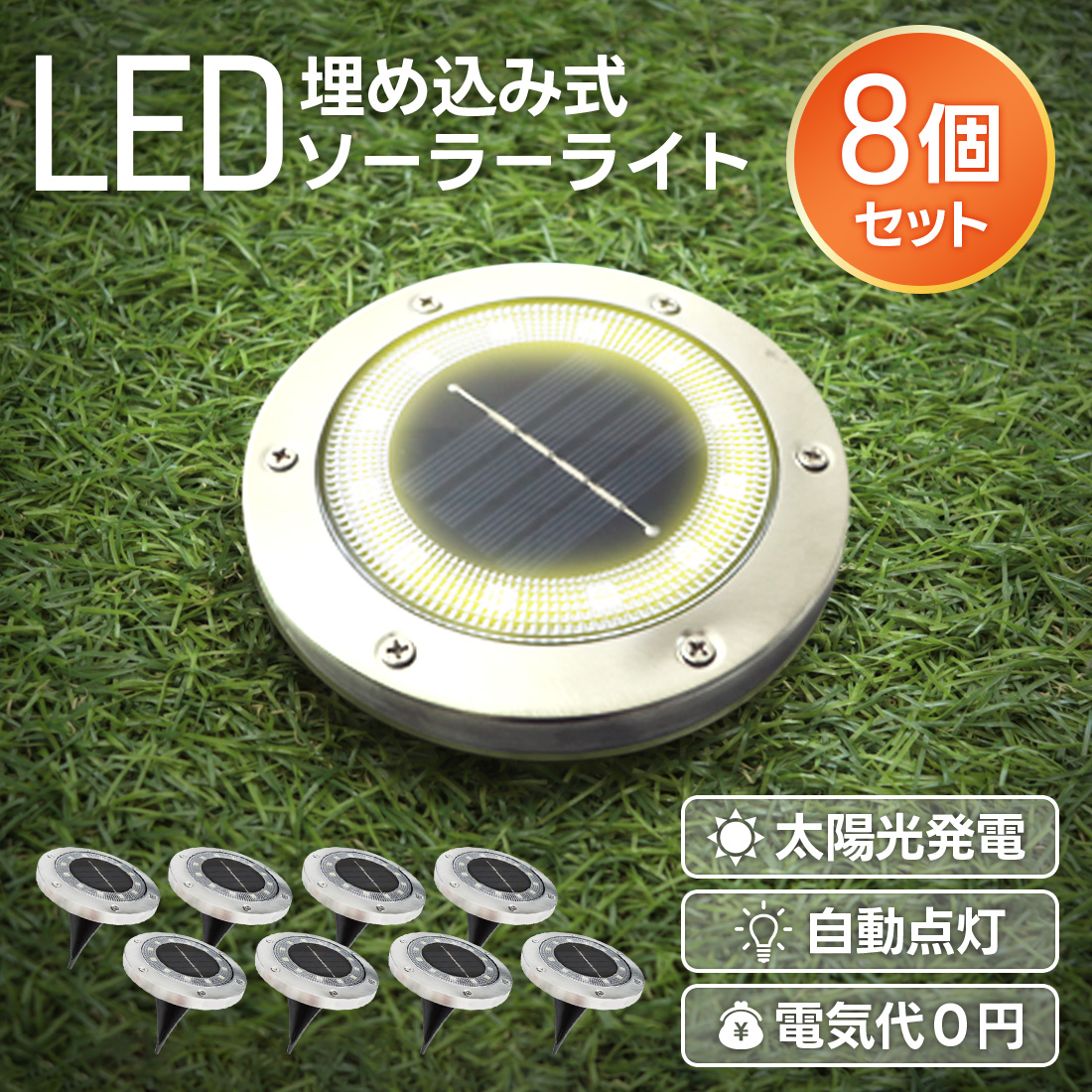ガーデンライト ソーラー 埋め込み 明るい おしゃれ LED 屋外 外灯 庭 イルミネーション 自動点灯 屋外照明 置き型 防水 ライト 屋外 8個セット