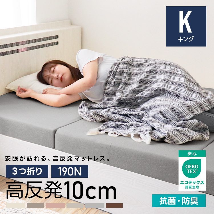 マットレス キング 三つ折り 高反発 折りたたみ 極厚10cm ベッドマットレス 高反発マットレス 腰痛 マット 80cm幅 スリム 洗えるカバー付 寝具 ベッド 安い