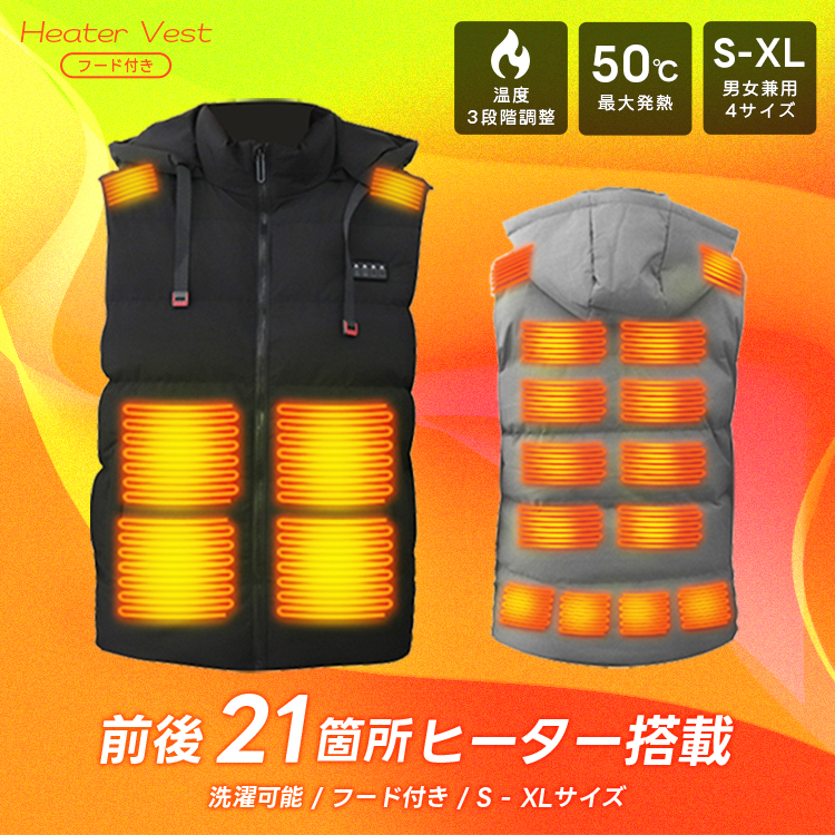 \100円OFF/ 電熱ベスト 電熱ジャケット フード付き ヒートベスト ヒーターベスト 温度調整 軽量 防寒着 作業着 撥水 広範囲 丸洗い可能