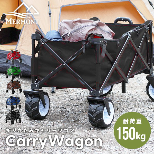キャリーワゴン ミニ 折りたたみ キャリーカート 大容量 耐荷重150kg アウトドアワゴン キャンプカート 容量100L 台車 荷台 頑丈 4輪 コンパクト MERMONT