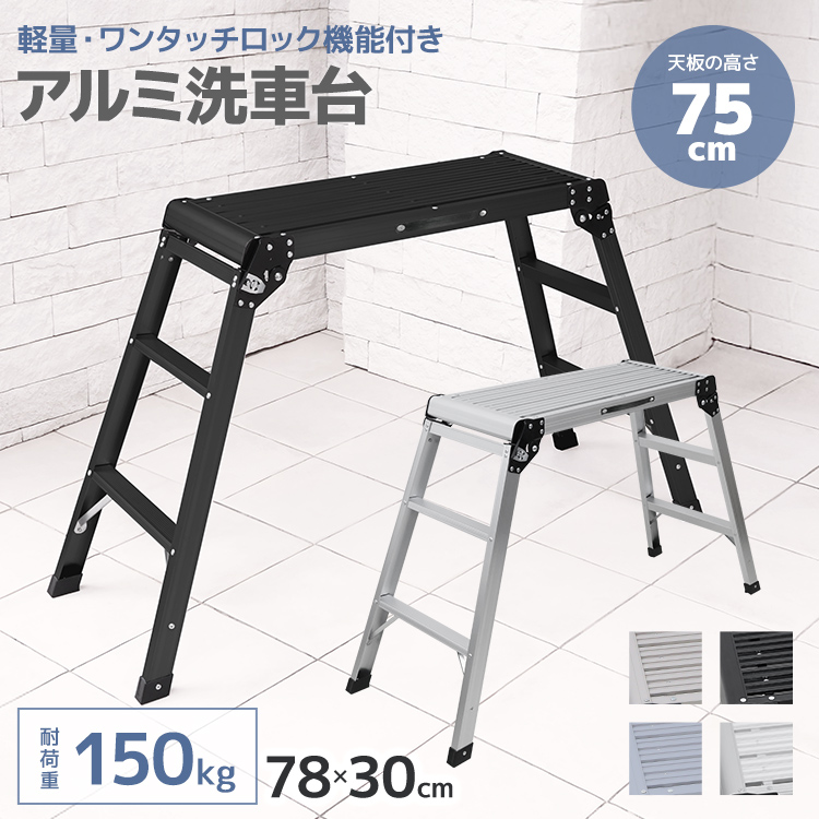 洗車台 脚立 75cm 耐荷重150kg 軽量 アルミ踏み台 折りたたみ式 持ち手付き 足場台 作業台 ステップ台 車用 はしご 持ち運び便利