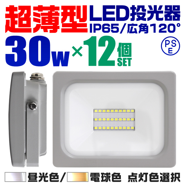 投光器 led 屋外 30W 防水 LEDライト 12個セット 作業灯 防犯灯 防災 災害 ワークライト 広角120度 3mコード付 看板照明 昼光色 外灯