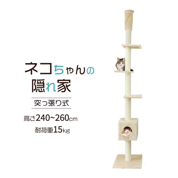 キャットタワー 突っ張り型 突っ張りポール 大型 麻 260cm 猫タワー おしゃれ 爪とぎ 猫グッズ スリム 遊び場 突っ張り型キャットタワー 口コミ 高評価