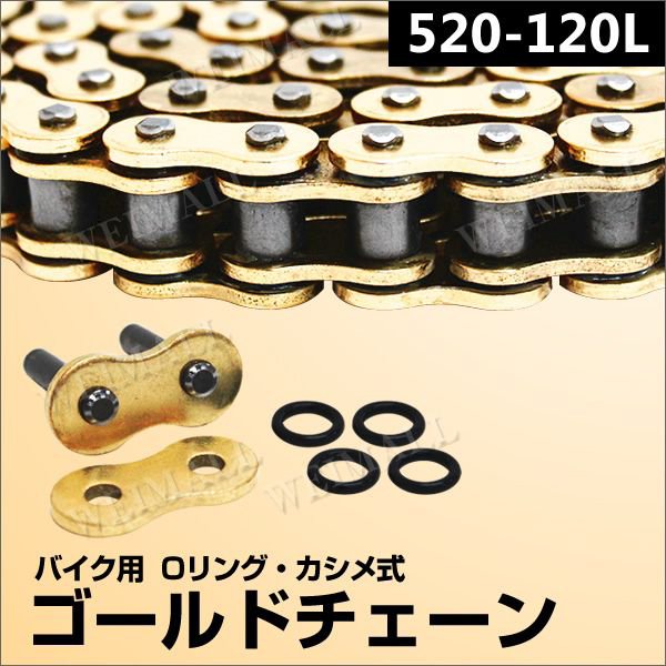 バイク チェーン ゴールドチェーン シールチェーン Oリング バイクチェーン 520-120L 高耐久 R1-Z ルネッサ SRV250S FZ400 VTR250