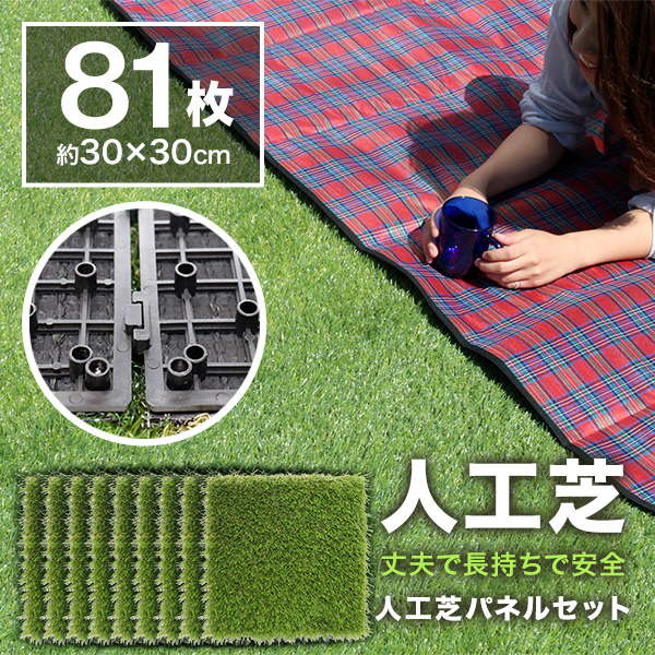 人工芝 30cm×30cm パネル式 81枚セット カット可能 リアル人工芝 ベランダ ガーデニング 庭 ジョイントマット タイル パネル バルコニー タイルジョイント式
