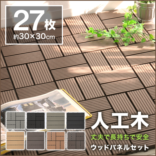 ウッドパネル ウッドデッキ 人工木 ベランダ タイルデッキ テラス 庭 タイル 置くだけ 27枚セット ジョイントタイル おしゃれ
